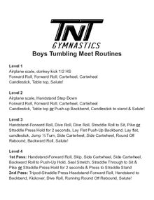 TNT Boys Tumbling Meet Routines PDF Please click icon to view TNT Boys Tumbling Meet Routines. We will have a separate boys session! Download "Boys Tumbling Meet Routines (2).pdf"